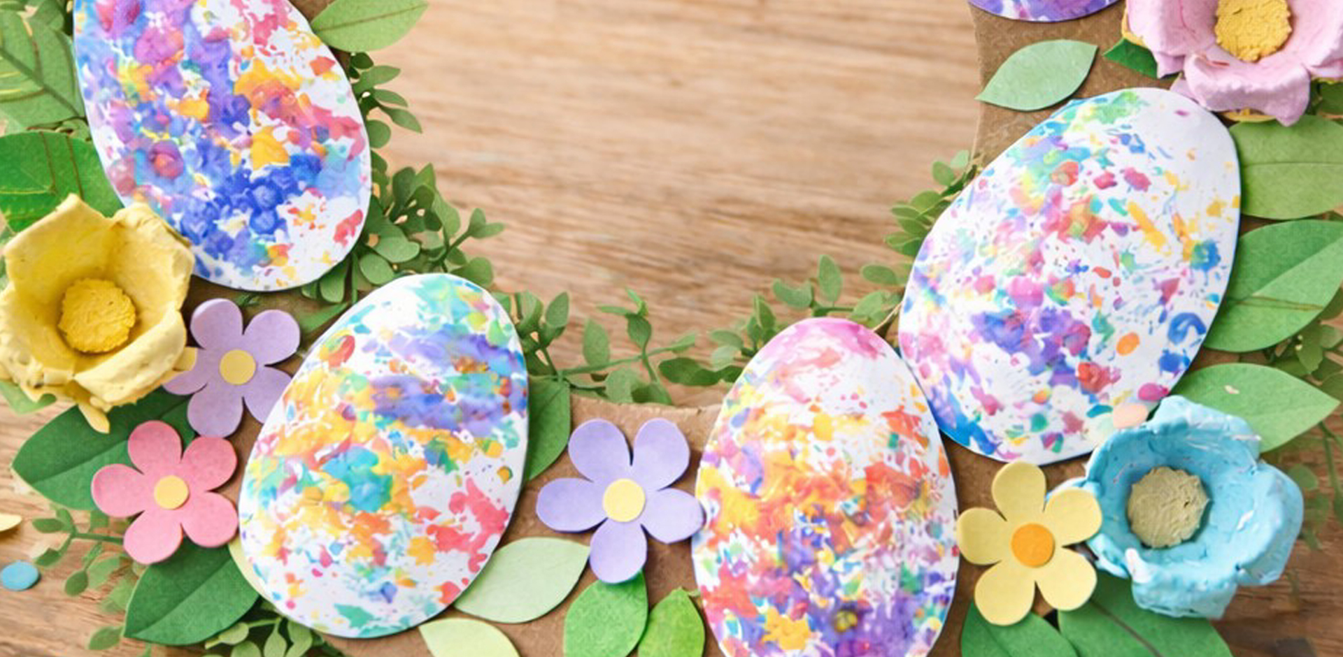 Unleash your creativity and make colourful spin art eggs to design your own Easter wreath, then decorate a wooden bunny to take home and use for many years to come!